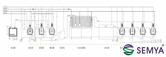 (1) 自動化程度高,操作方便,可自動完成混料、殺菌、均質(zhì)、冷卻、老化、凝凍、灌裝等工作,操作系統(tǒng)用電器集中控制。